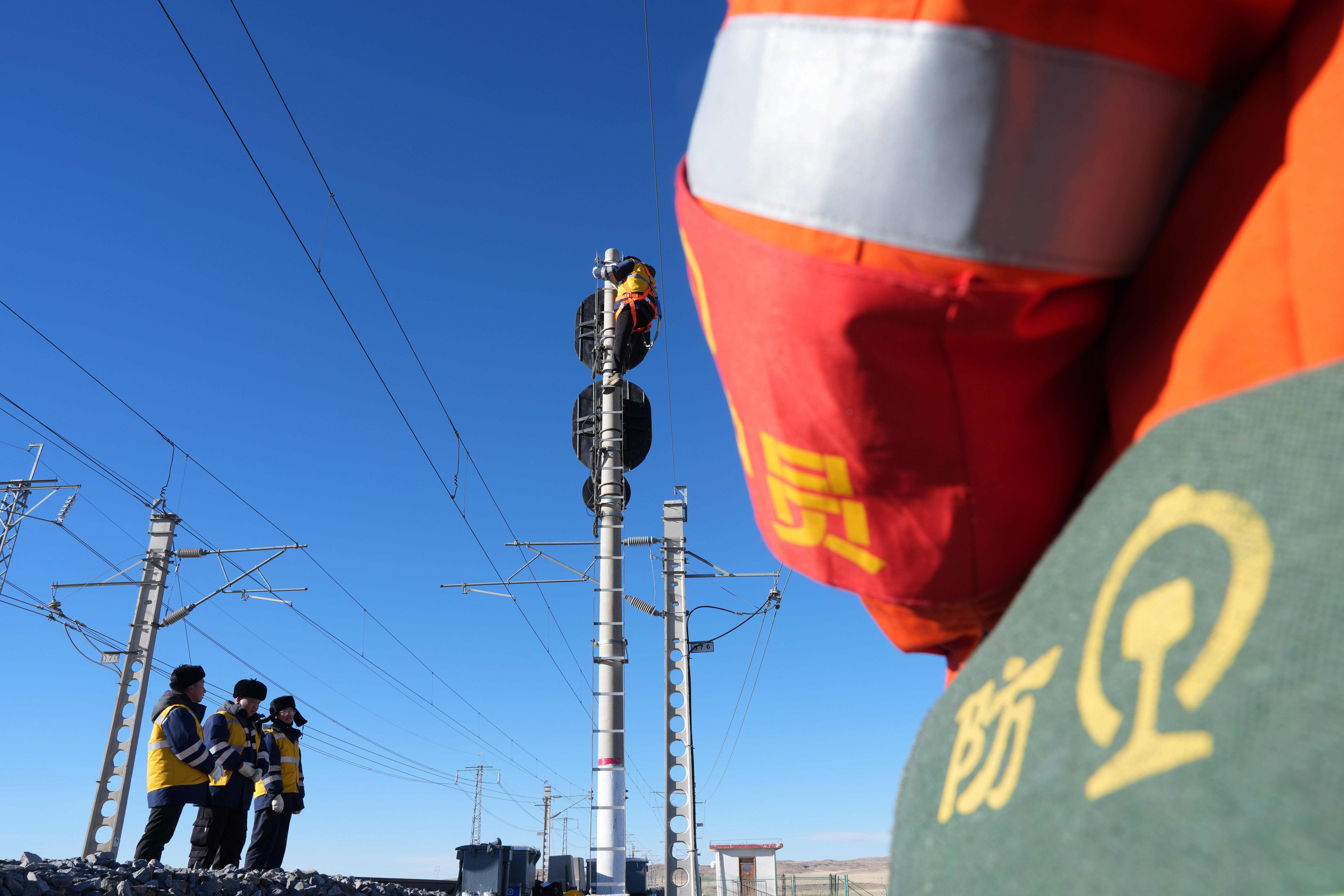 信号工孙伟场地班组在哈尔盖信号车间哈尔盖信号工区青海湖站平日巡检。“不要因为天冷就简化功课过程”