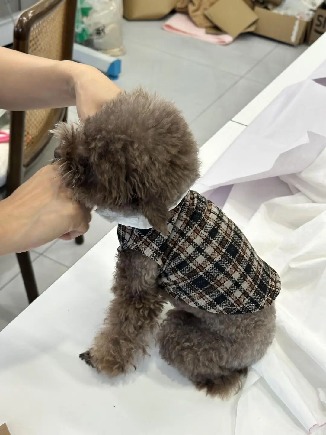 开设宠物服装课程的思法,源于客岁6月的一笔零碎订单。一位来宾顺着酬酢媒体上的视频找到了他的缝纫店,思要沈明哲给自家爱犬作念一件衣着。其时一度把他难倒了。