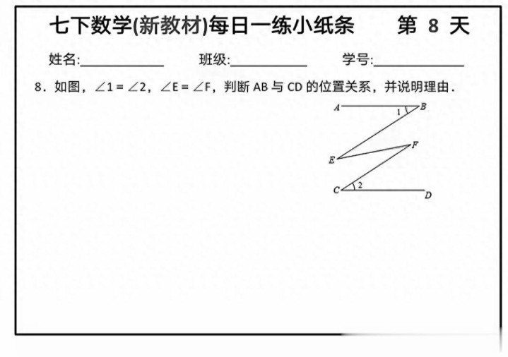 七年齿下册的几何题,许多孩子一看到“Z字形”图形就头疼,其实只有抓准内错角,解题比玩拼图还浅陋!今天这谈题,学会设施,下次碰到平直秒答