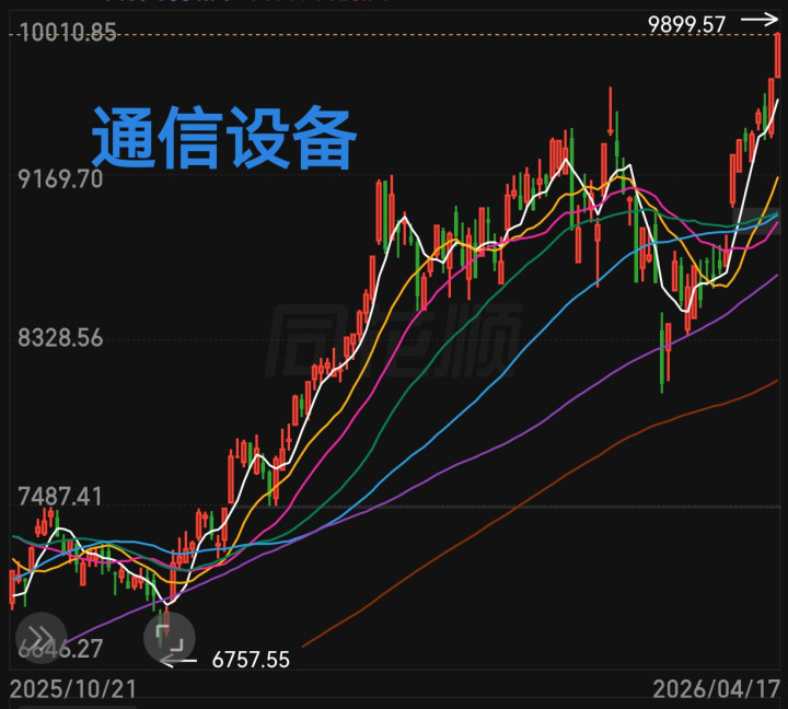 易中天齐是通讯板块,通讯竖立板块随着暴涨,接续历史新高。