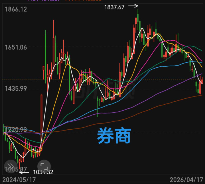 券商板块回踩棕色144周线反弹,上周小幅高涨,本事面看,还赢得踩棕色周线,在这个位置缓缓筑底的可能相比大。