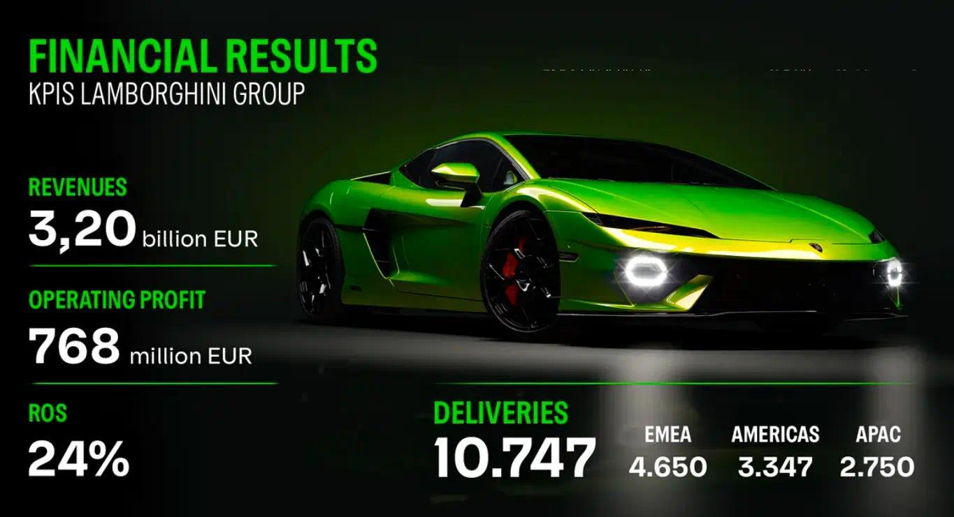 日前,兰博基尼发布2025财年全年纪迹论述。品牌罢了握续庄重增长,录用量、买卖额双双刷新历史记录,环球录用量10747台,邻接第三年冲破万台。买卖额为32亿欧元,同比增长3.3%,买卖利润7.68亿欧元,MILAN SPORTS利润率24%。