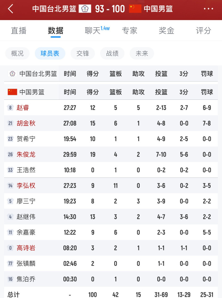 数据不会骗东说念主。胡金秋两场场均17.5分12篮板,效果值29,进了FIBA最好声威候选;杨瀚森、王俊杰、林葳、淡厚然这些留洋的立时追念;周琦和曾凡博也快复出了。14东说念主名单详情要砍,谁上谁下,就看进展。