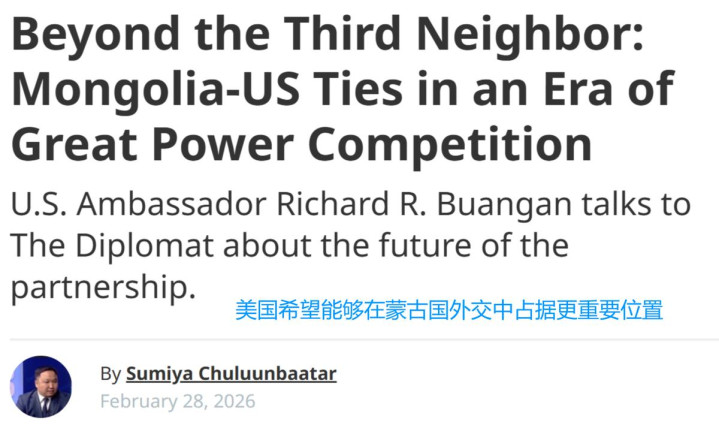 好意思国驻蒙古大使理查德·布安根在招揽好意思媒采访时大谈好意思蒙关联的改日,在这位一线社交官看来,好意思蒙关联改日可期,以致有望卓绝“第三邻国”。