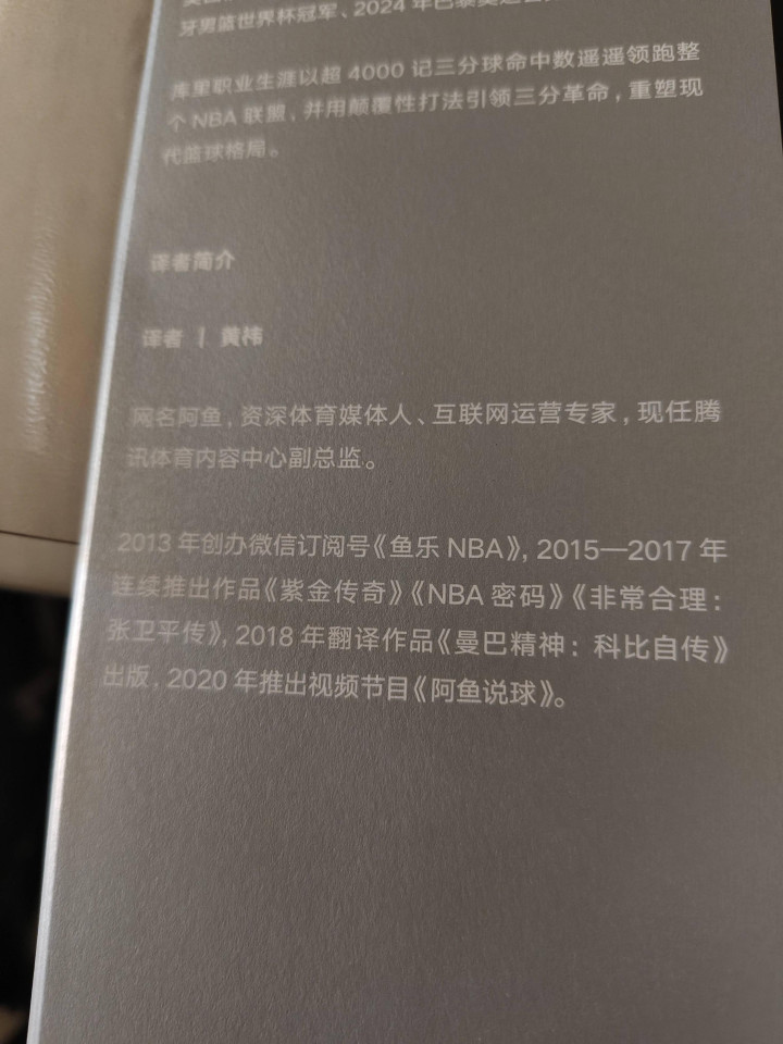 “资质决定起始,魄力和轨范界说绝顶,伟大绝非天生,而是后天练成。” 库里用千万次投篮改写了篮球形式,阿鱼从已往的“分货剪辑”作念到实验总监,而我还在为每一场CBA比赛敲字——咱们齐在各自的畛域里,重复着“后天练成”的过程。合上书时,库里的三分轨迹和咱们已往敲字的键盘声近似在沿路。有些搭档不会一直同业,但那些沿路为青睐熬的夜、为实验拼的劲,就像库里投进的4000记三分,早仍是刻进了各自的东谈主生里。