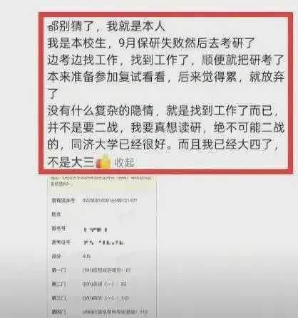冷漠!同济大学405分考生烧毁复试,本东说念主流露原因,果真很履行!